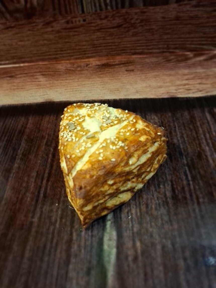 zart blättrig, mit Butter, gelaugt, mit Saaten bestreut