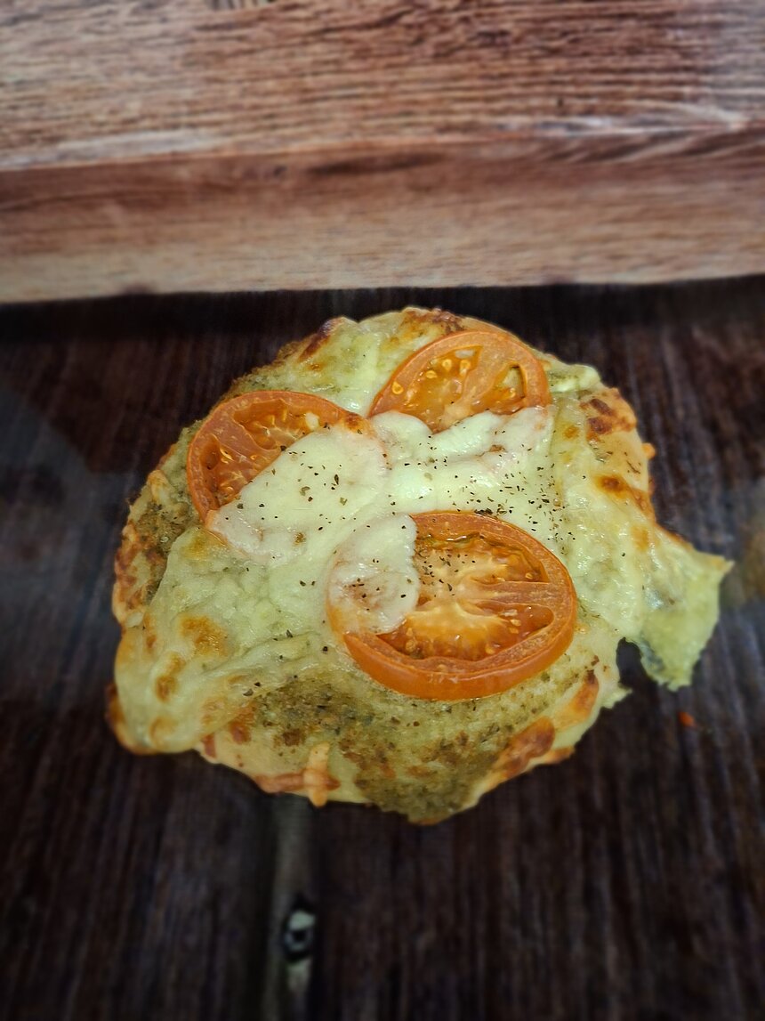unser kleiner Snack mit Pesto, Tomate und Morarella überbacken